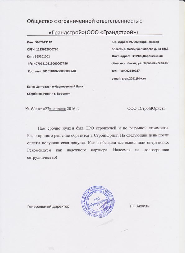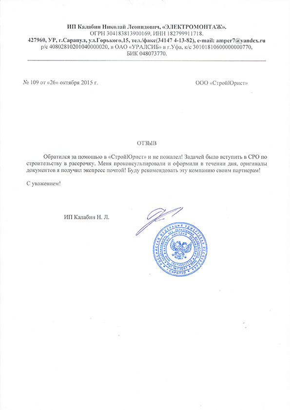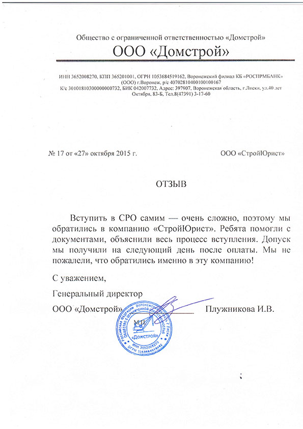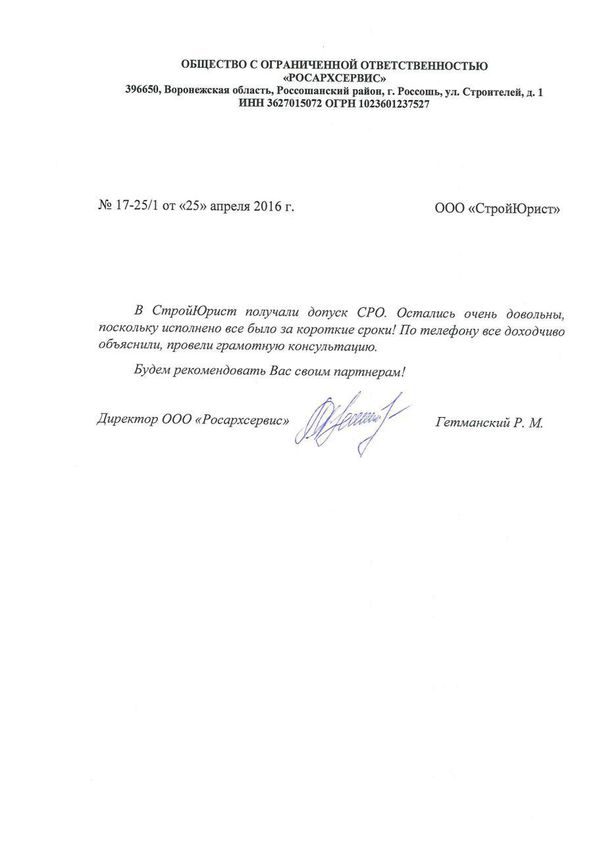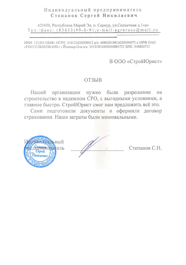 Отзывы клиентов "СтройЮрист" по вступлению в СРО в Сергиевом Посаде