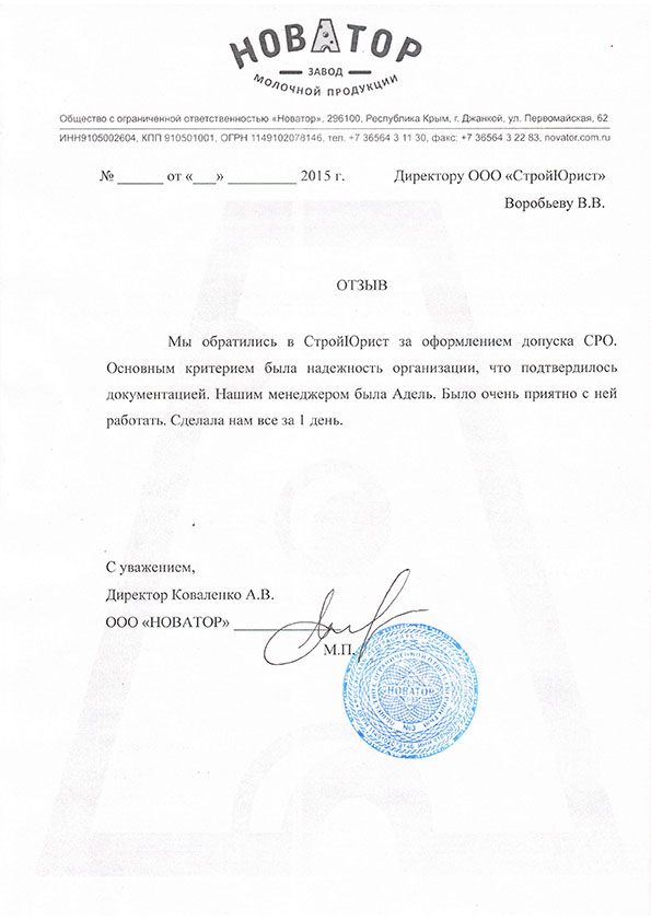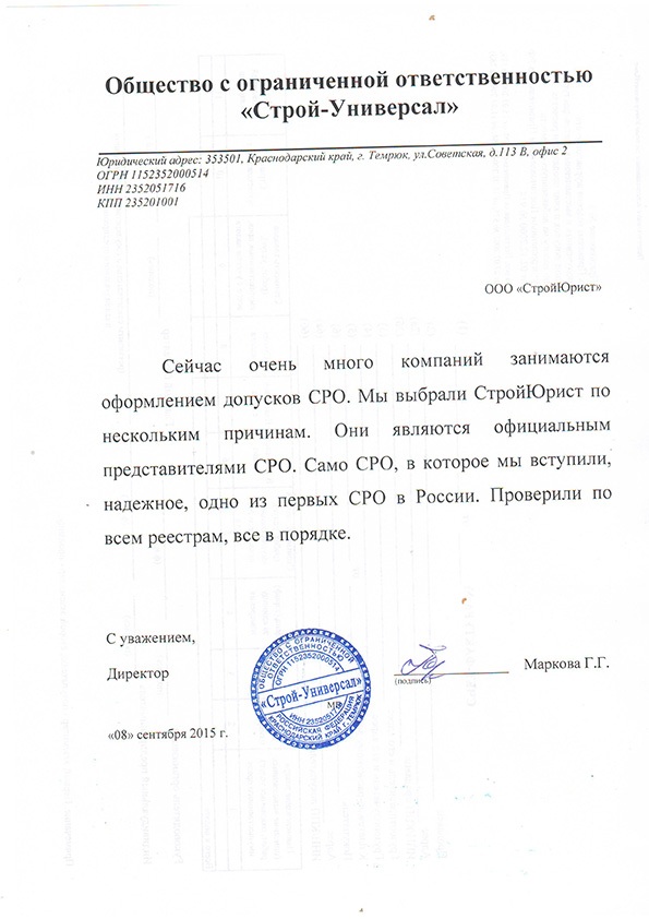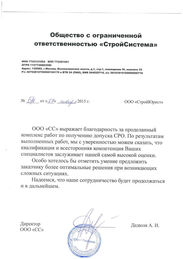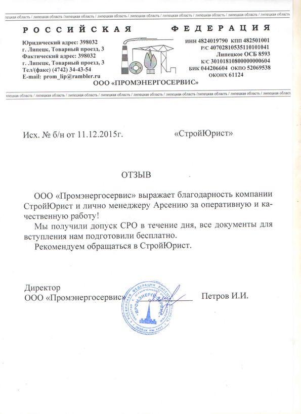 Отзывы клиентов "СтройЮрист" по вступлению в СРО в Сергиевом Посаде
