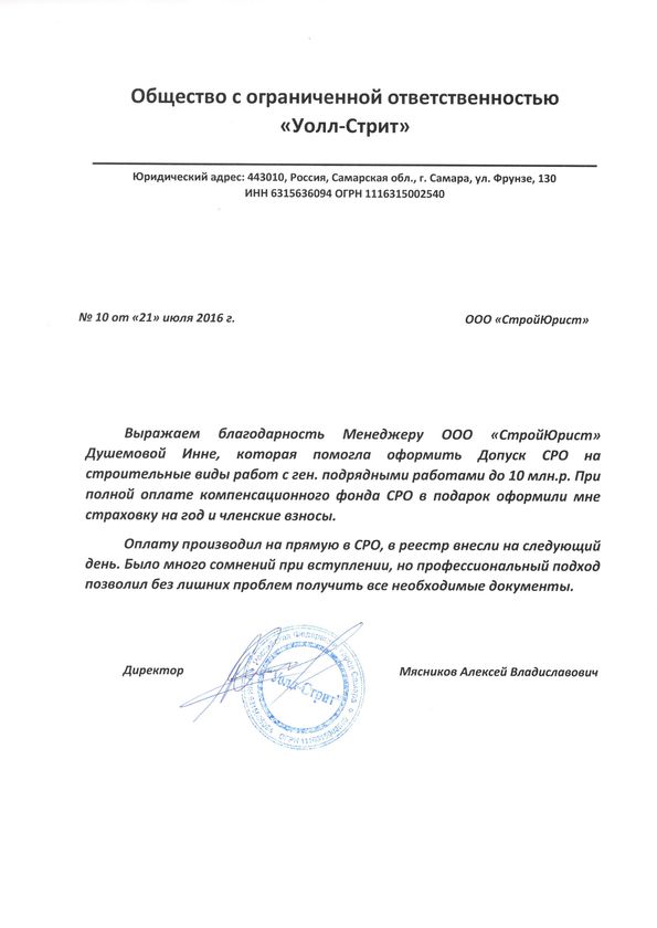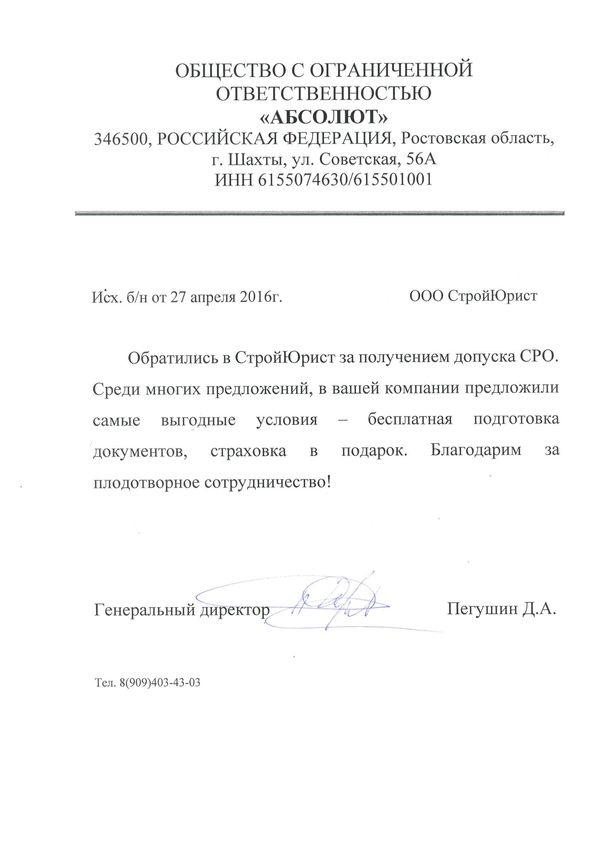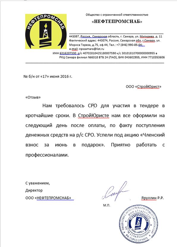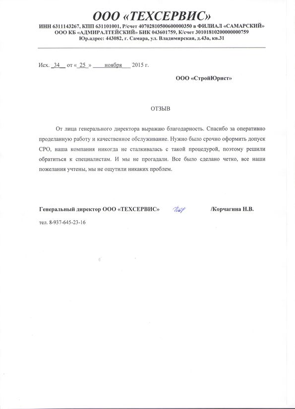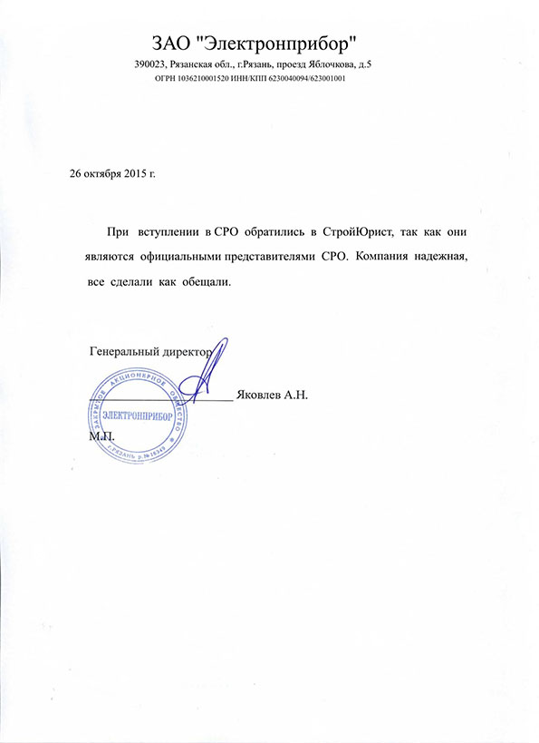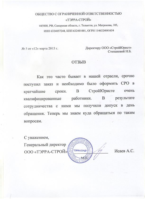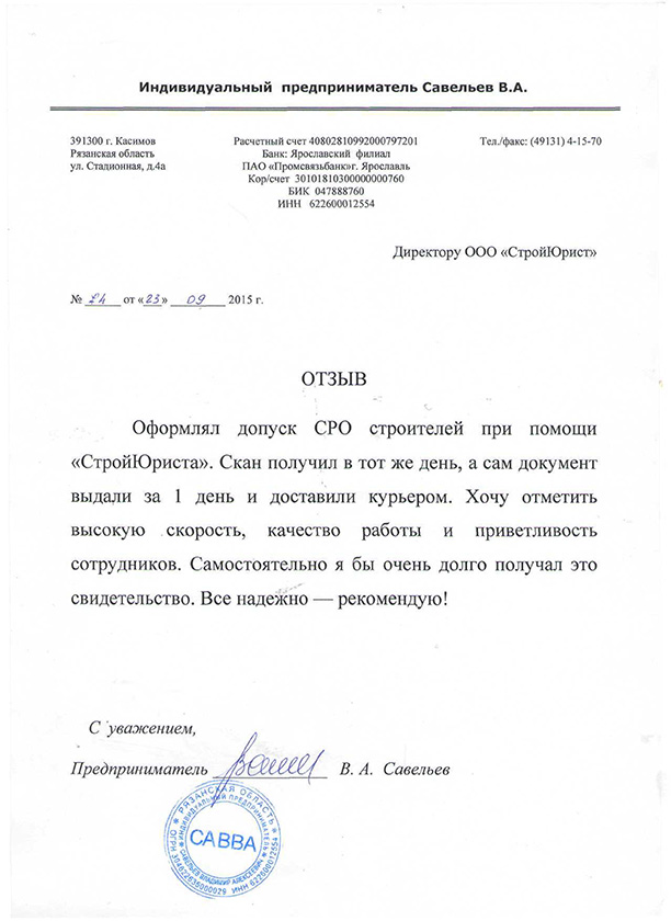 Отзывы клиентов "СтройЮрист" по вступлению в СРО в Сергиевом Посаде