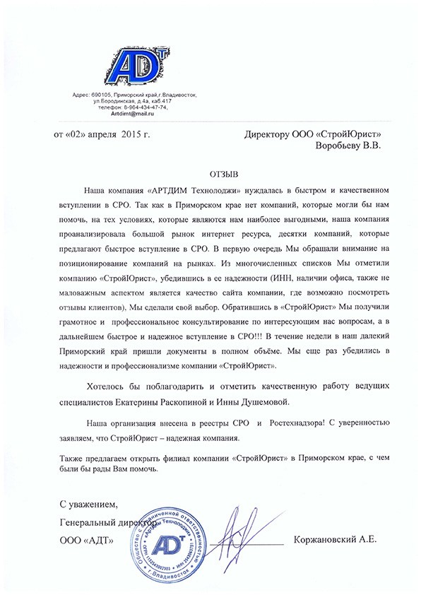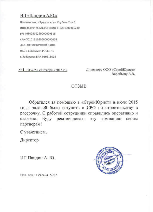 Отзывы клиентов "СтройЮрист" по вступлению в СРО в Сергиевом Посаде