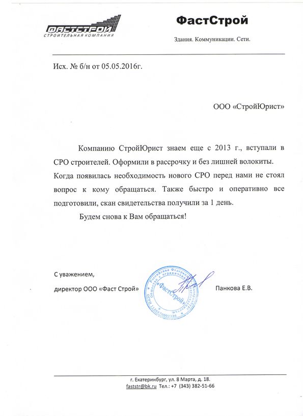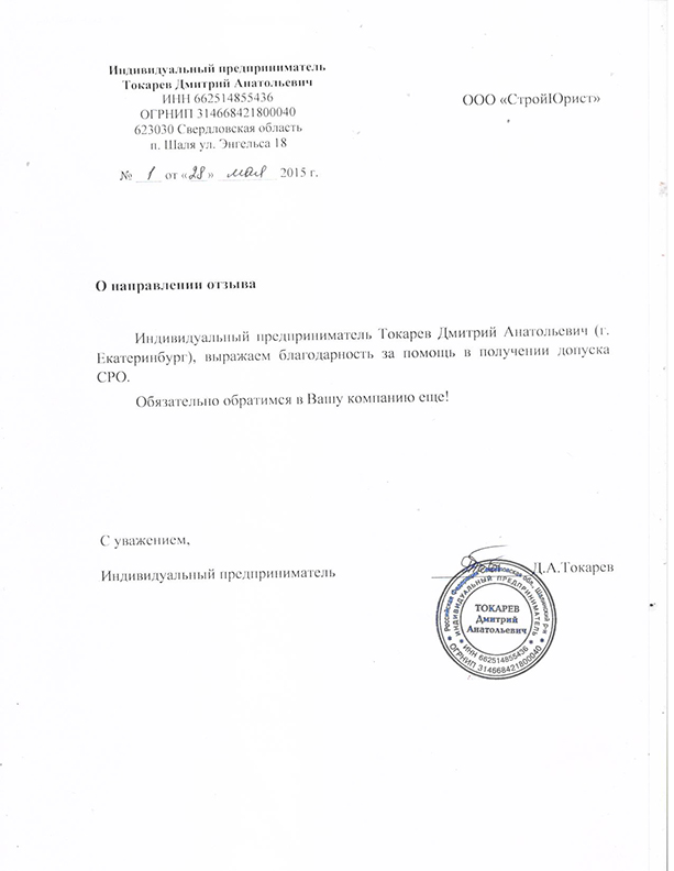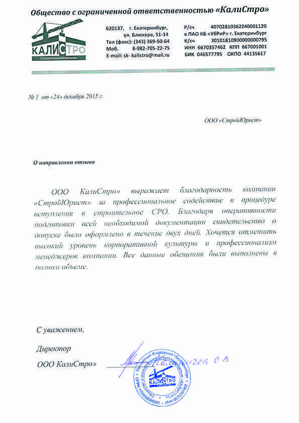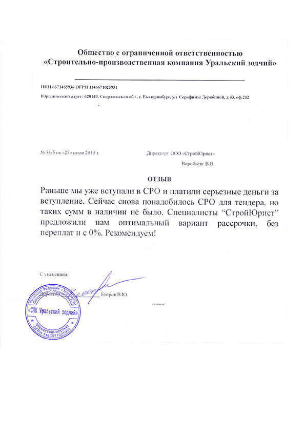 Отзывы клиентов "СтройЮрист" по вступлению в СРО в Сергиевом Посаде