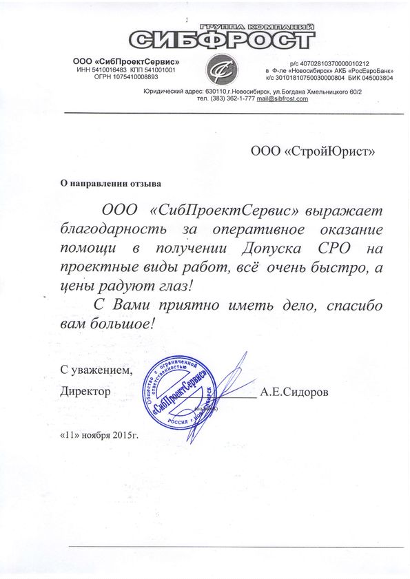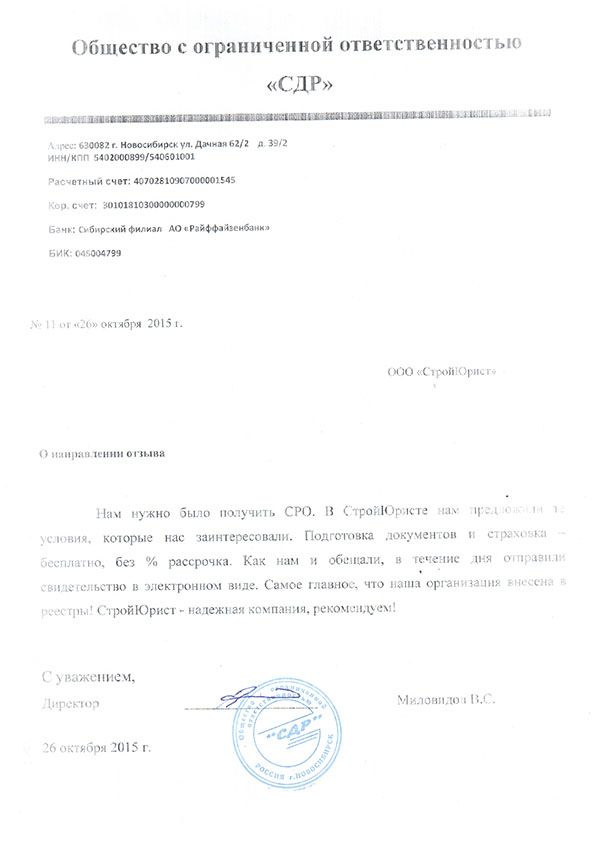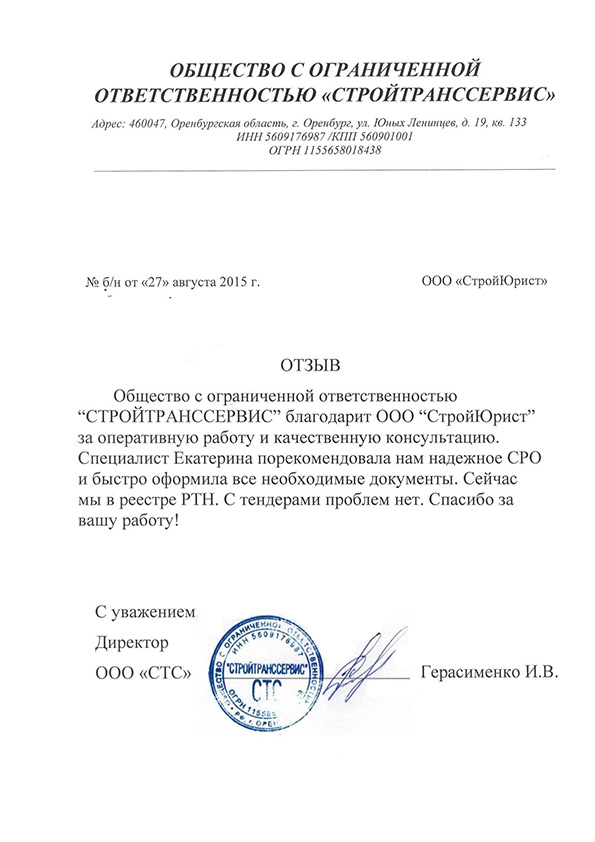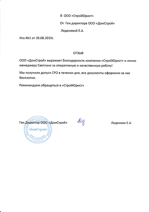 Отзывы клиентов "СтройЮрист" по вступлению в СРО в Сергиевом Посаде