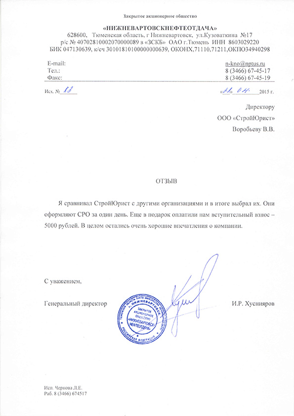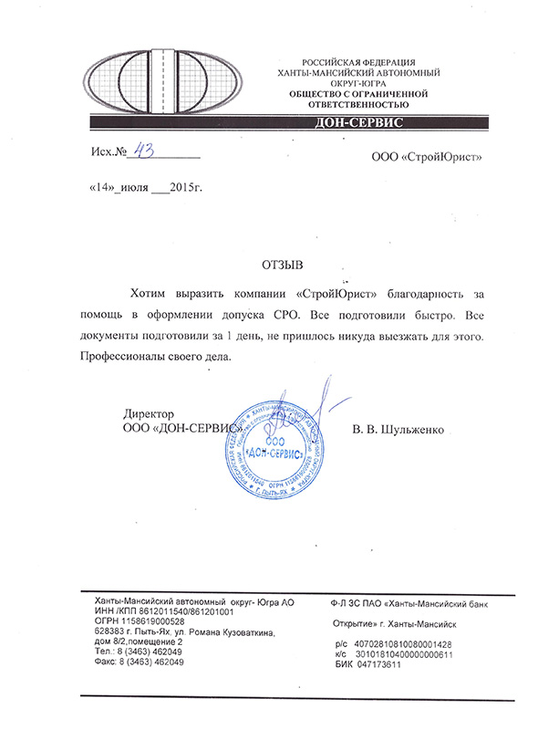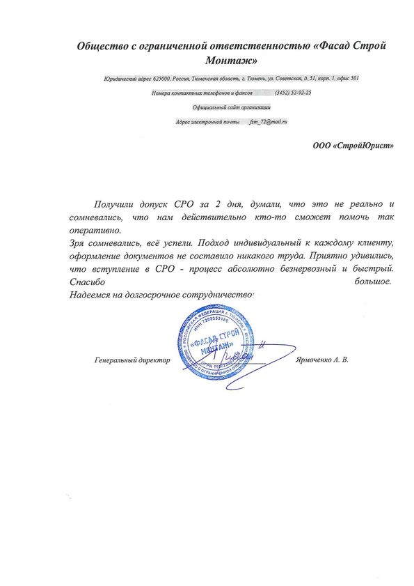 Отзывы клиентов "СтройЮрист" по вступлению в СРО в Сергиевом Посаде
