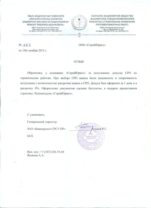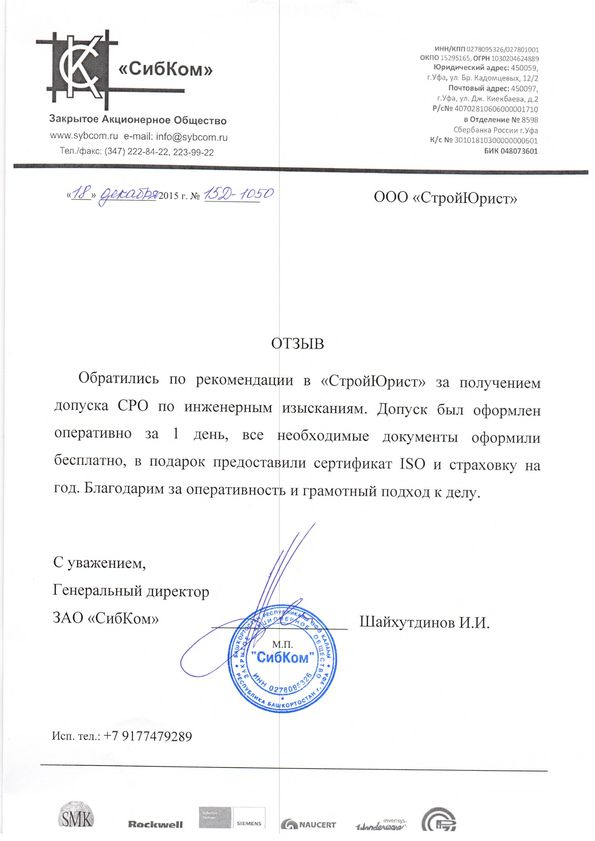 Отзывы клиентов "СтройЮрист" по вступлению в СРО в Сергиевом Посаде