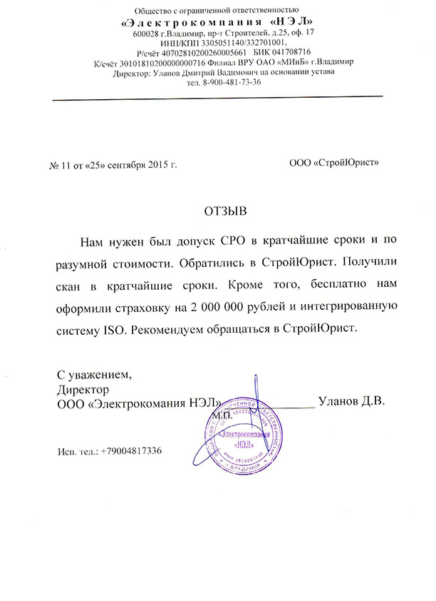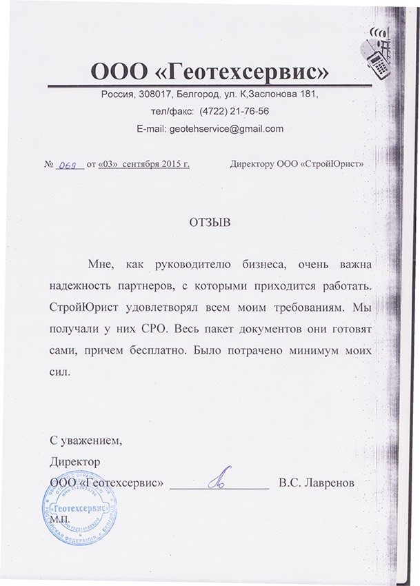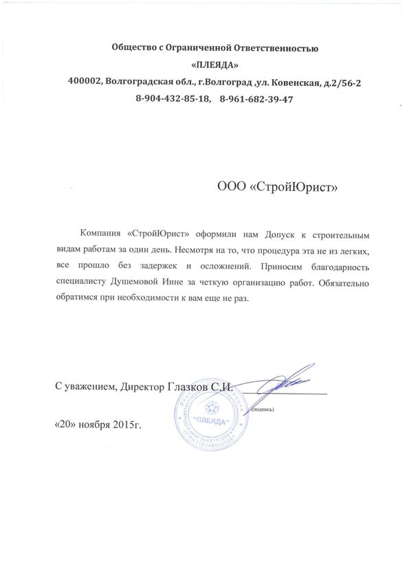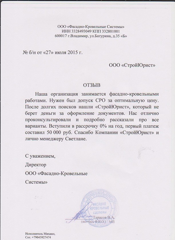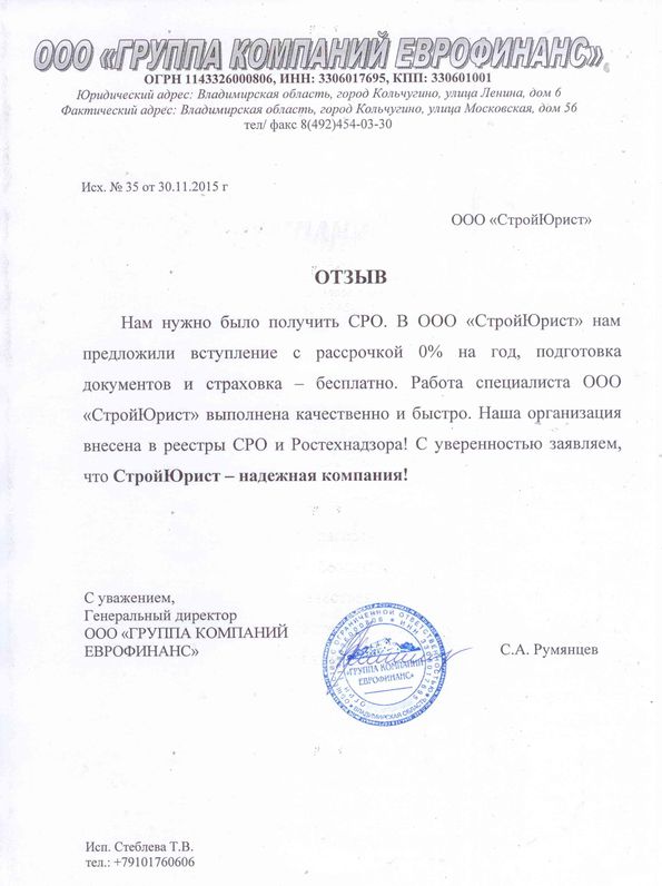 Отзывы клиентов "СтройЮрист" по вступлению в СРО в Сергиевом Посаде